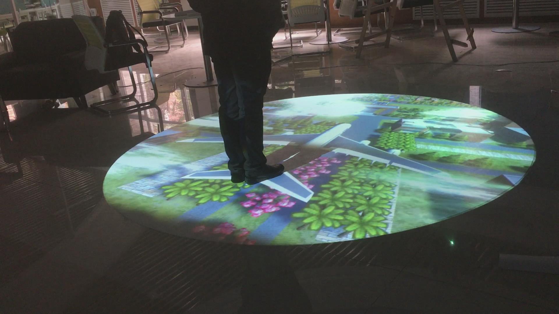地面互動是參與者和地面上影像的真實互動,使多名參與者融入場景中,同時參與游戲。當你踏入投影機投射在地面上的影像時,你可以直接使用雙腳在地面投影幕上的虛擬場景進行互動,然而互動效果就會隨著你的腳步產生相應的變化。