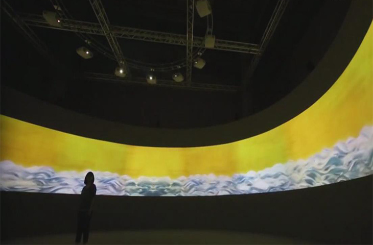 環(huán)幕投影是指投影幕弧度大于等于180度的投影形式,一般由多個(gè)投影機(jī)組成環(huán)幕投影系統(tǒng),結(jié)合融合軟件,對(duì)多個(gè)投影機(jī)投射出來的畫面進(jìn)行拼接,使之成為一幅完整的、色彩度更高、分辨率更高的畫面,從而達(dá)到沉浸式的觀感體驗(yàn)。